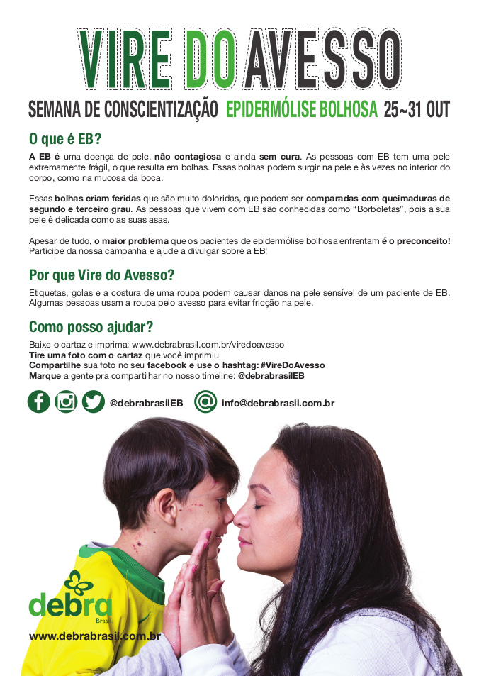Semana de Conscientização da Epidermólise Bolhosa | 25 – 31 de Outubro Autor do post:admin Post publicado:16 de outubro de 2018 Categoria do post:Notícia